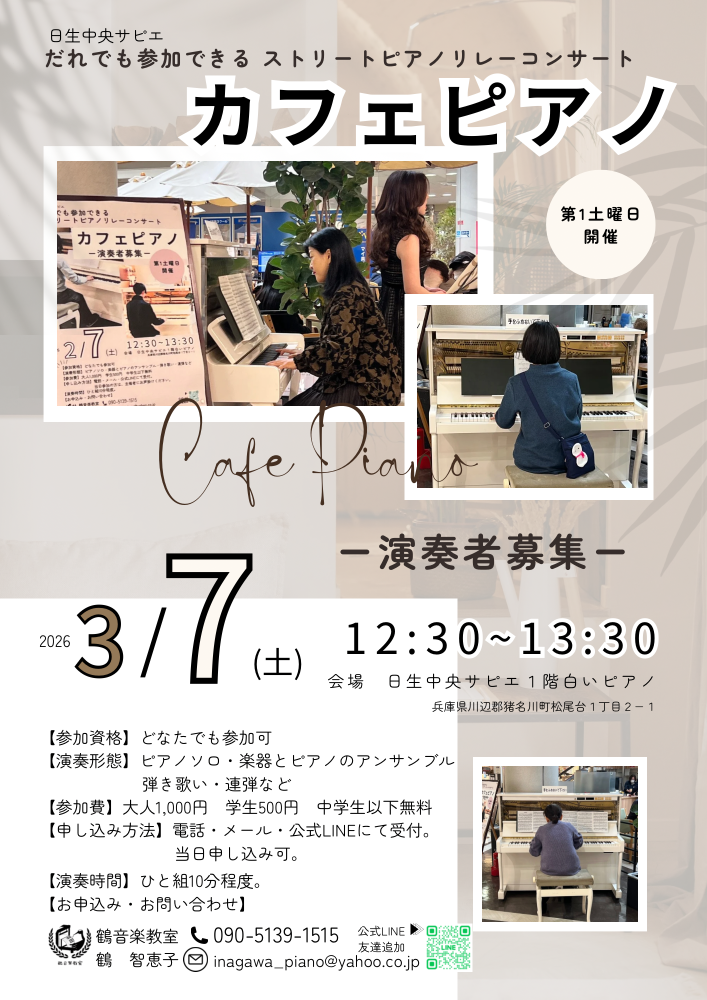 【参加型】ストリートピアノ開催!日生中央サピエ1階白いピアノどなたでも参加可能🉑